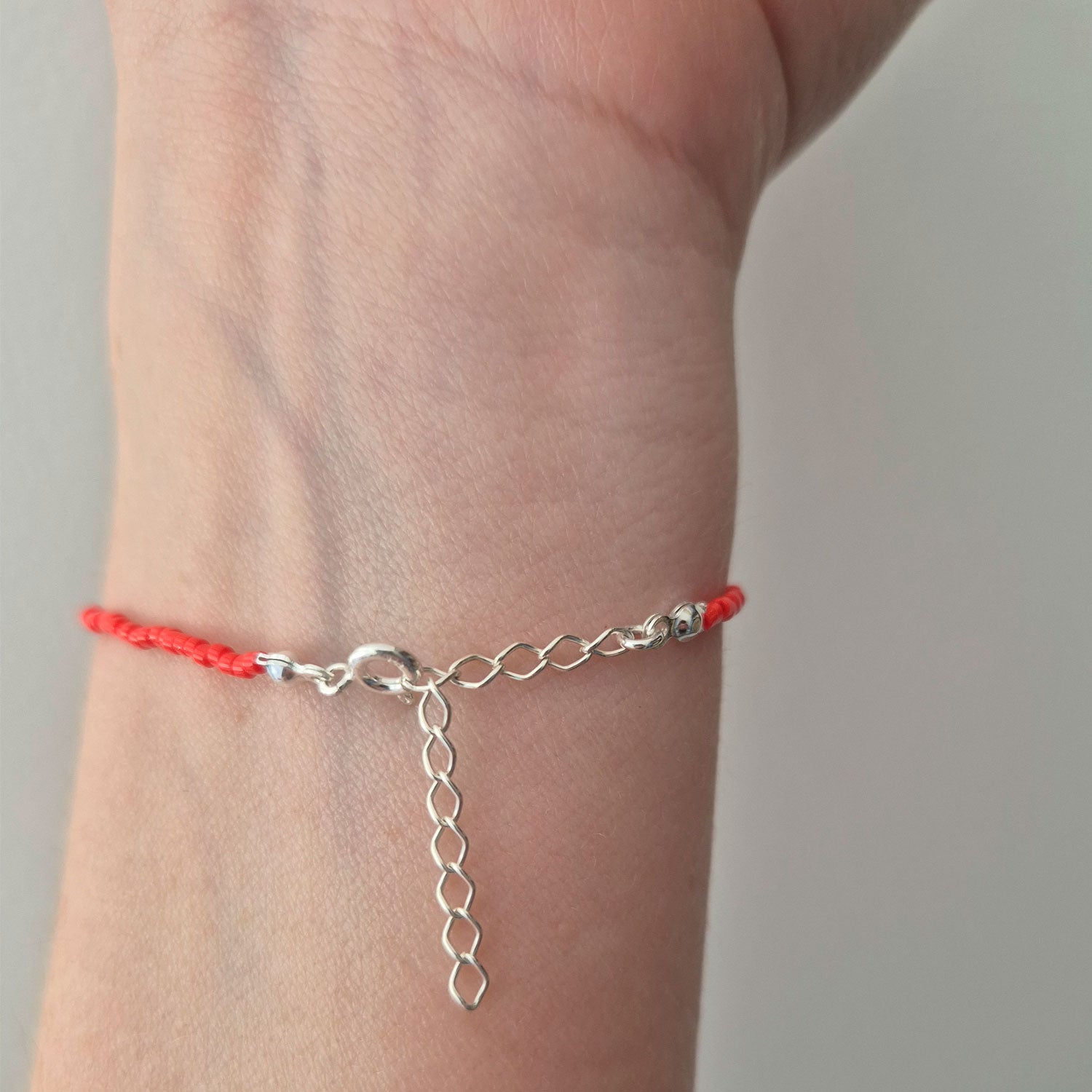 Pulsera Roja Plata Fina 925 Con Cristal Cuarzo Protección Rojo